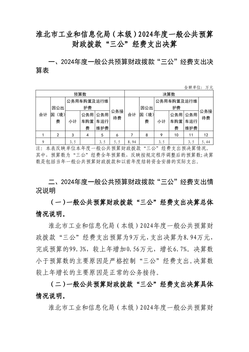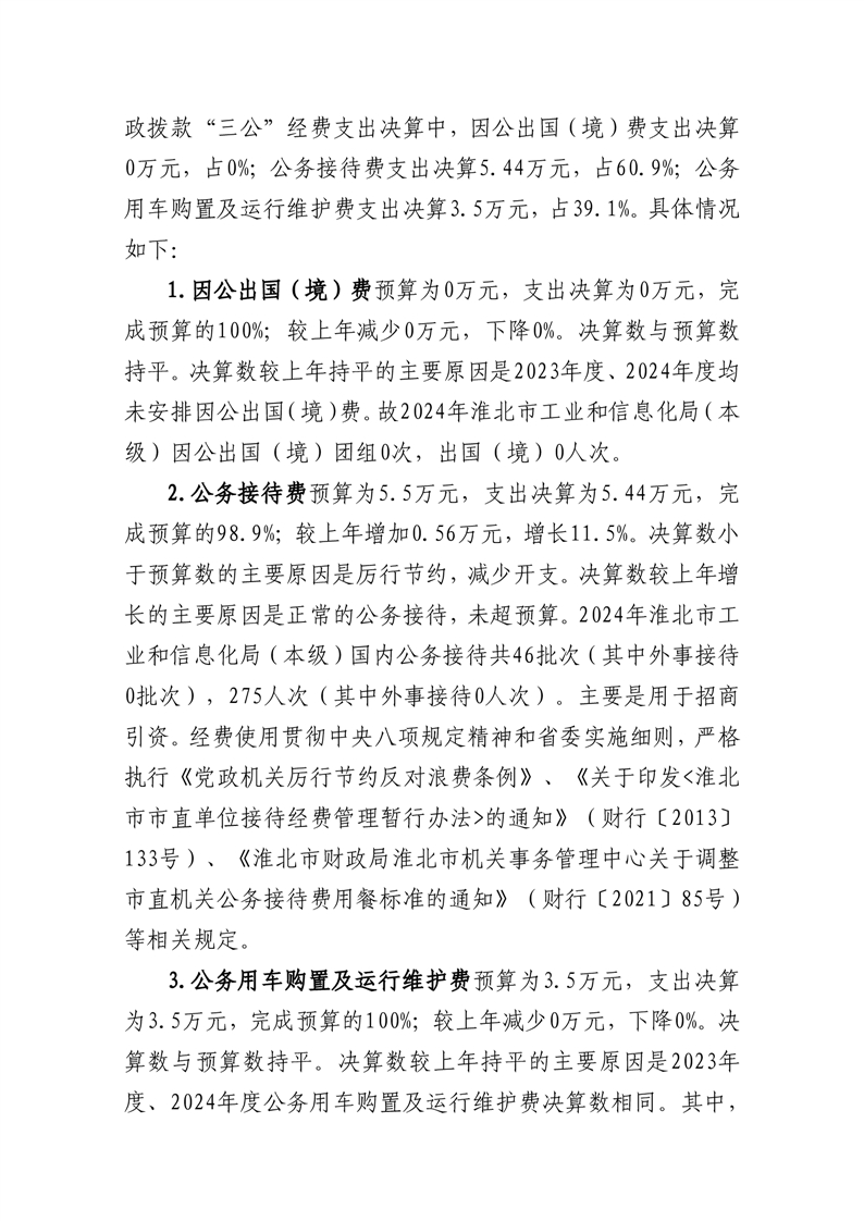 淮北市工业和信息化局(本级)2024年度单位一般公共预算财政拨款“三公”经费决算情况说明