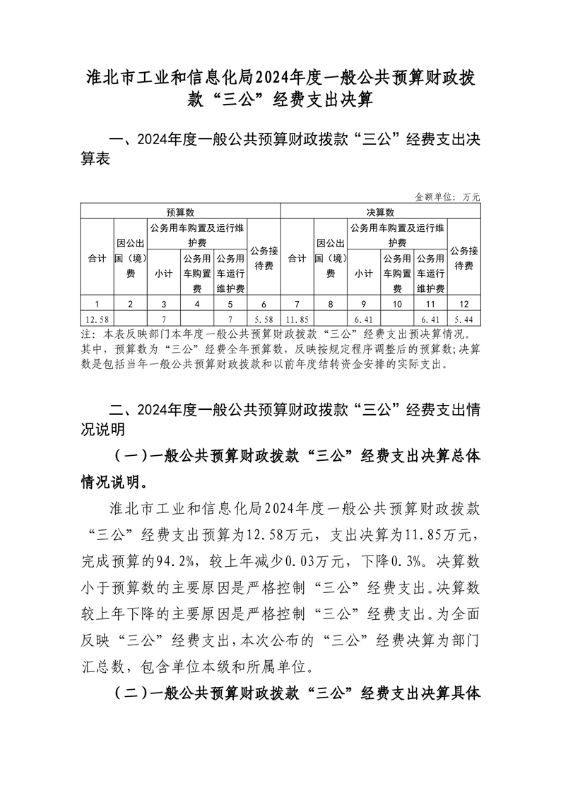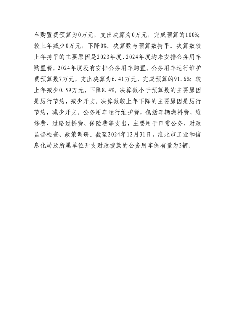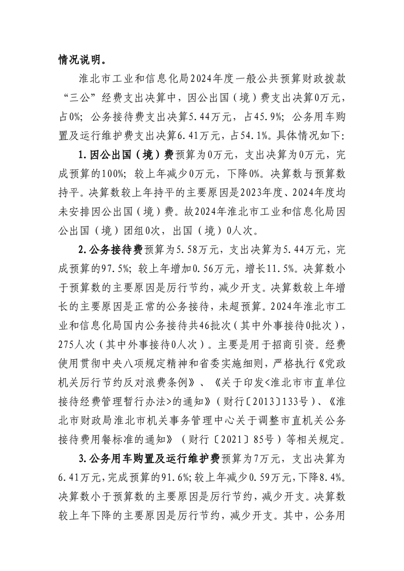 淮北市工业和信息化局2024年度部门一般公共预算财政拨款“三公”经费决算情况说明